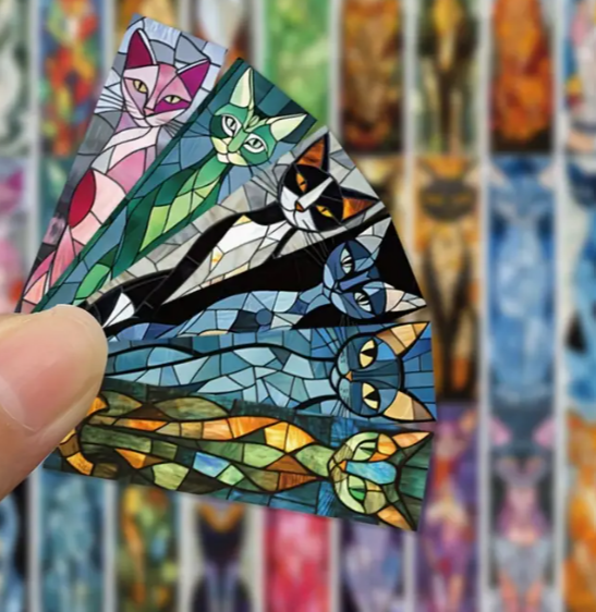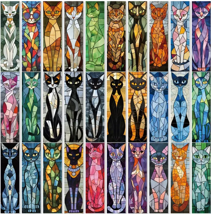 5 willekeurige boekenleggers met kattenafbeelding per set.
