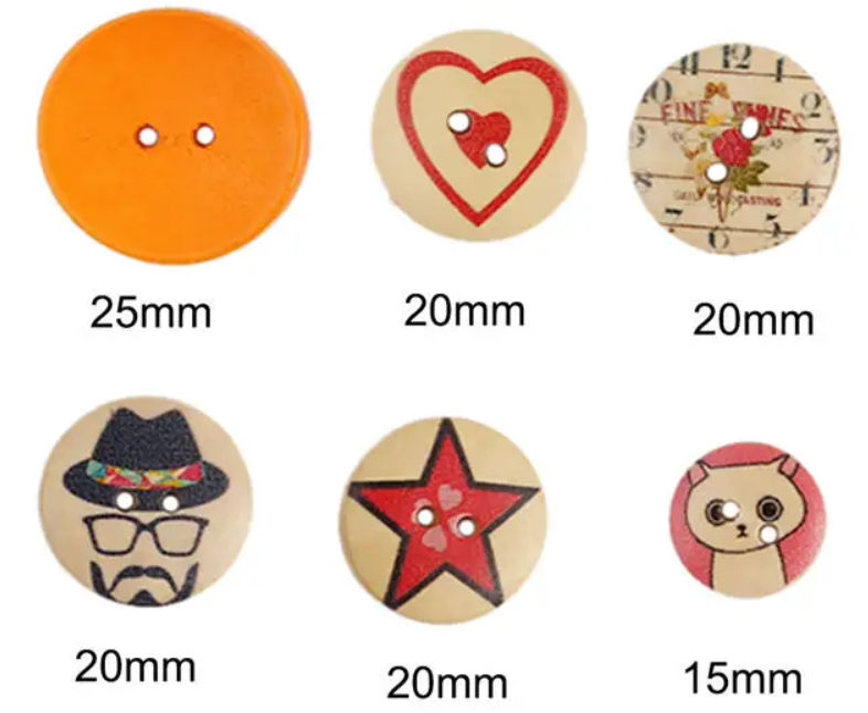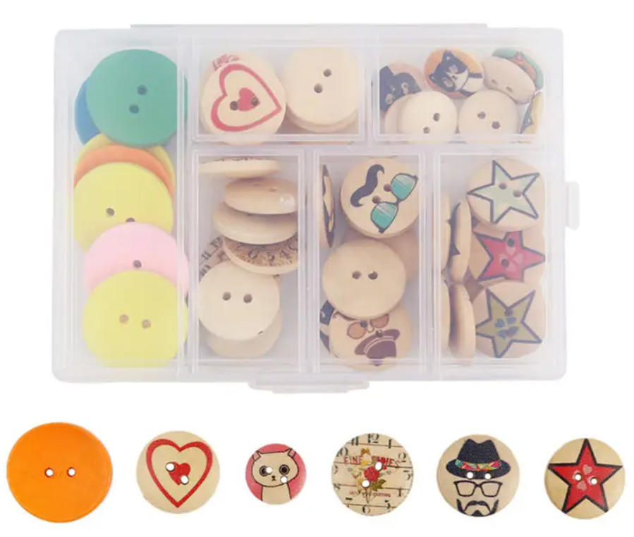Doosje gekleurde houten knopen