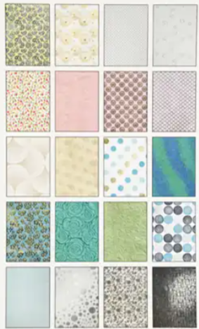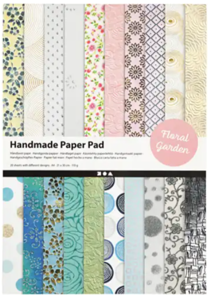 Set exclusief handgemaakt papier van katoen met metallic opdruk, embossing, en meer.
