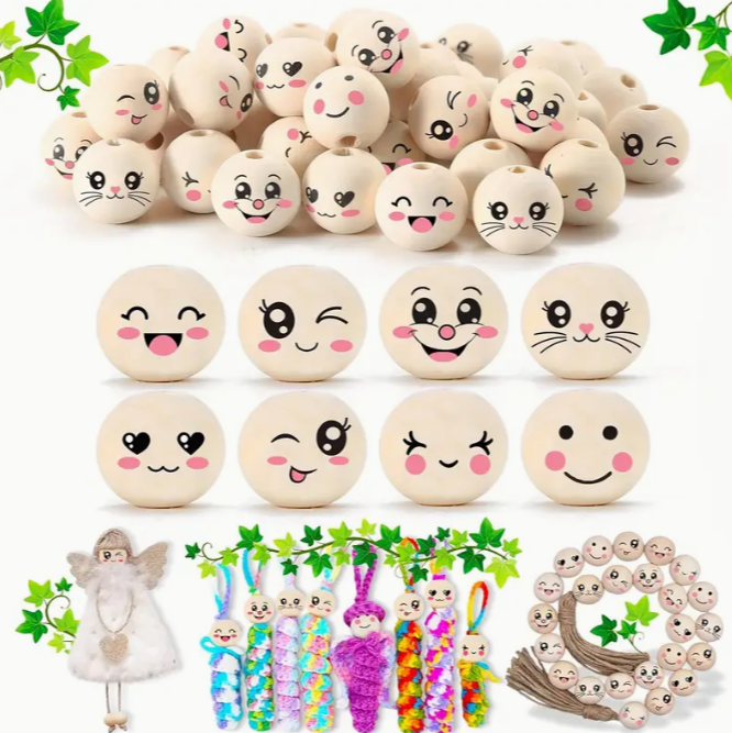 Houten kralen met gezicht
