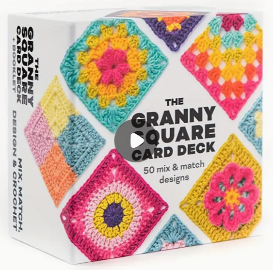 Elke kaart bevat een foto van een granny square aan de voorkant en een schematische tekening aan de achterkant.