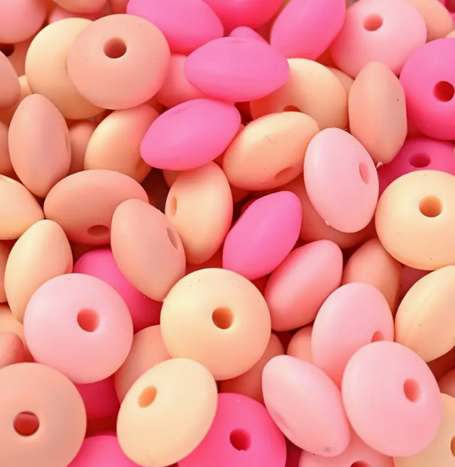 Platte silicone kralen roze mix 20 stuks