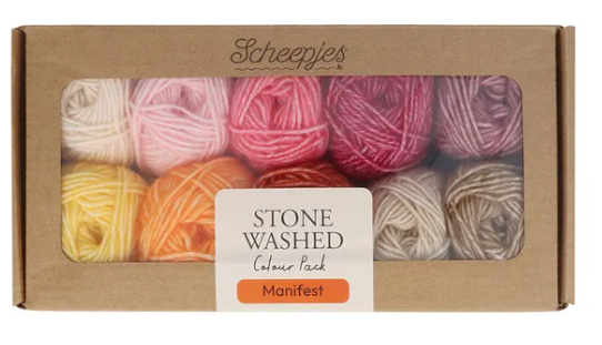 Scheepjes Stone Washed Colour Pack Manifest bestaat uit stralende tinten voor degenen die een vleugje fantasie en dromerigheid aan hun projecten toe willen voegen. De kleurnummers in dit colour pack zijn: 804, 808, 820, 821, 831, 833, 835, 839, 842 en 843.