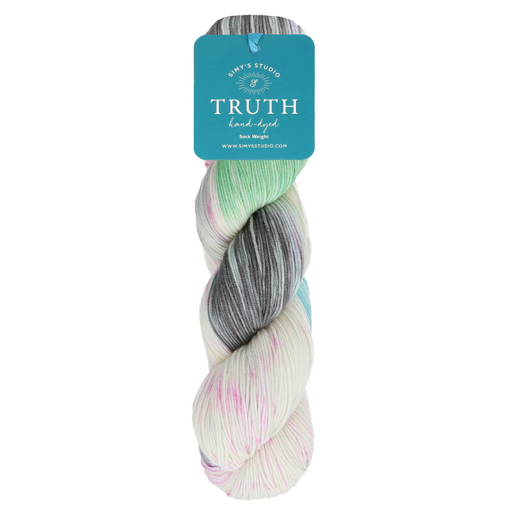 Simy’s Studio TRUTH Sock is gemaakt van heerlijk zachte 100% superwash merinowol. Het garen is verkrijgbaar in 15 prachtige kleurstellingen, waarin een basiskleur wordt aangevuld met streepjes en spikkels in verschillende andere kleuren. Dit geeft een prachtig gemêleerd effect.